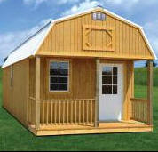 Treated Lofted Barn CabinThe Lofted Barn Cabin is available in 10' and 12' widths. It combines the best features of the lofted barn and cabin. All models feature a loft, extra high walls, a 9-lite door, three 2' x 3' windows, and a front porch.